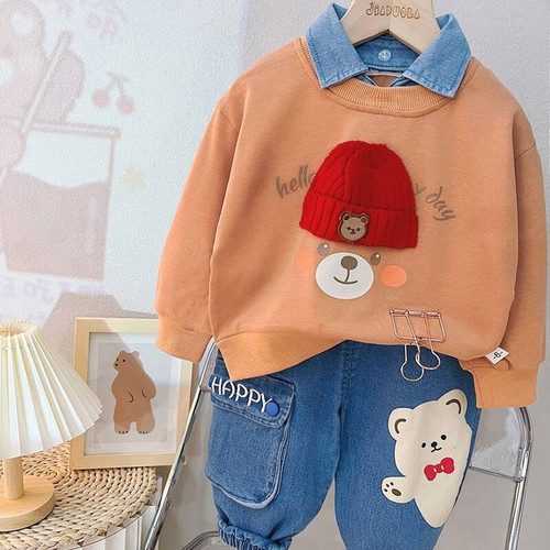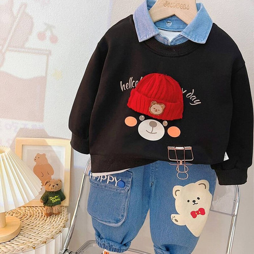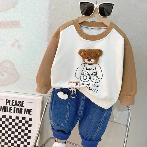 لباس بچگانه ست بلوز و شلوار تدی وارداتی. بلور دورس و شلوار جین