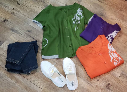لباس بچگانه وارداتی ست اسپرت عروسکی پیراهن نخ کنفی و شلوار جین