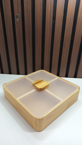 ظرف سرو چهار خانه درب دار بامبو مربع ۲۳ در ۲۳ سانت