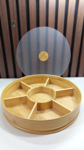 ظرف سرو گرد درب دار بامبو ۷ خانه فطر ۳۰ سانت