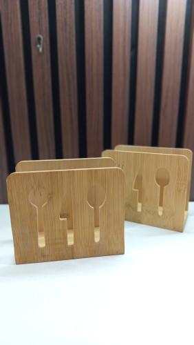 جا دستمالی بامبو طرح قاشق چنگال ۱۴ در ۱۲ سانت