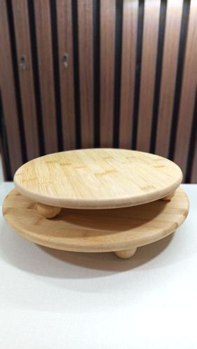 ظرف سرو گرد بامبو پایه توپی