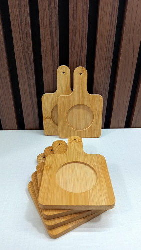 زیر لیوانی بامبو دسته راکتی چهارگوش پک ۶ عددی