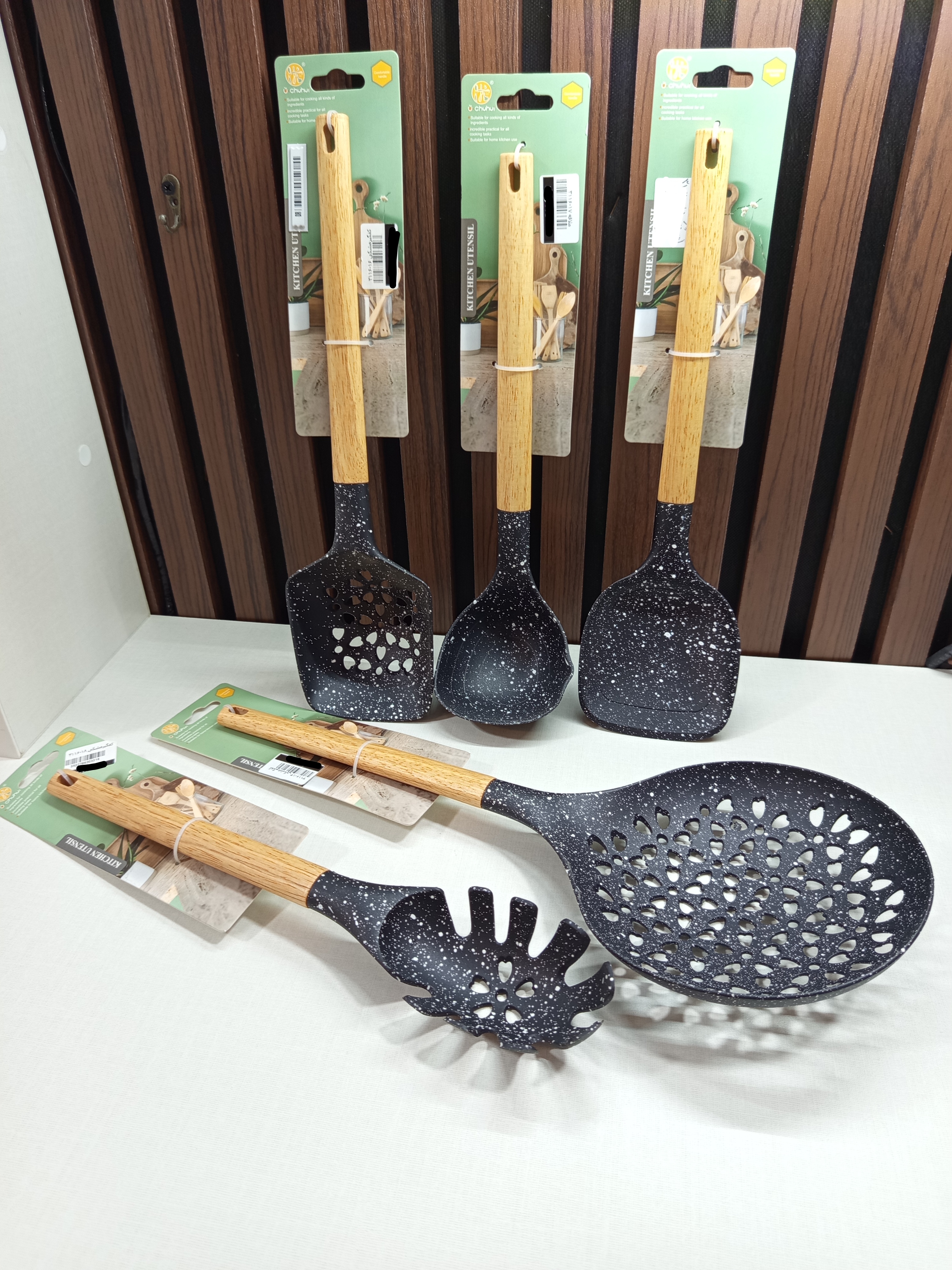 مجموعه کفگیر و ملاقه های کاربردی آشپزخانه مشکی دسته چوپ