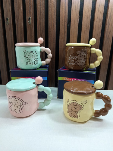 ماگ سرامیکی درب دار قاشق دار فانتزی