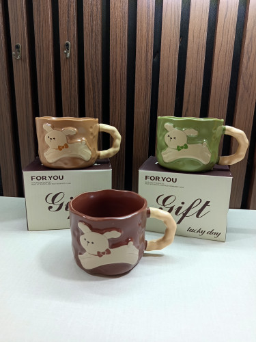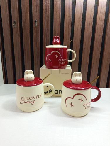 ماگ سرامیکی طرح خرگوش درب دار قاشق دار