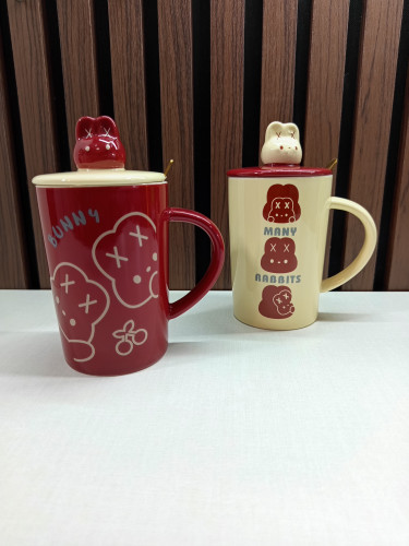 ماگ سرامیکی درب دار قاشق دار طرح خرگوش استوانه ای