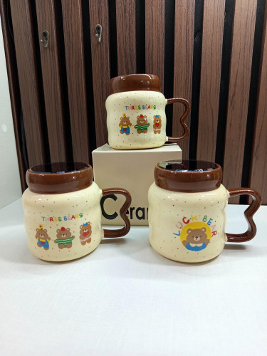 ماگ سرامیکی طرح خرس درب دار قاشق دار