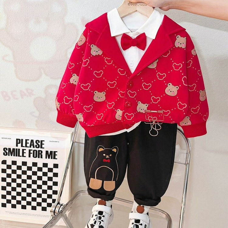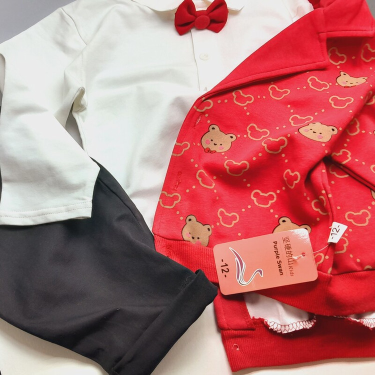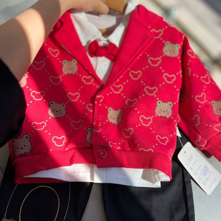 سه تیکه مجلسی وارداتی با پاپیون جنس بلوز نخ وپنبه شلوار کتان و کت نخ پنبه آستر کشی شده