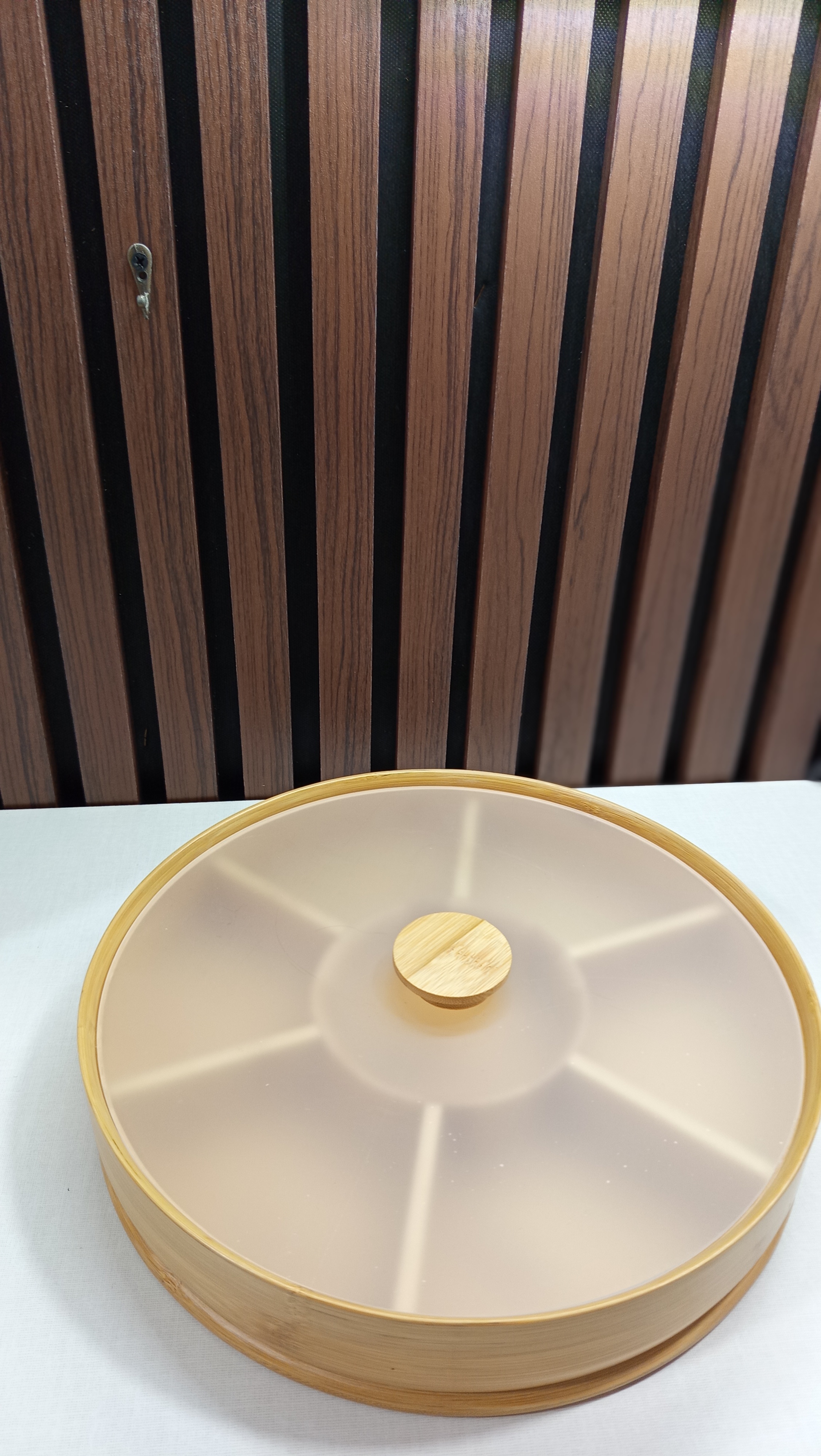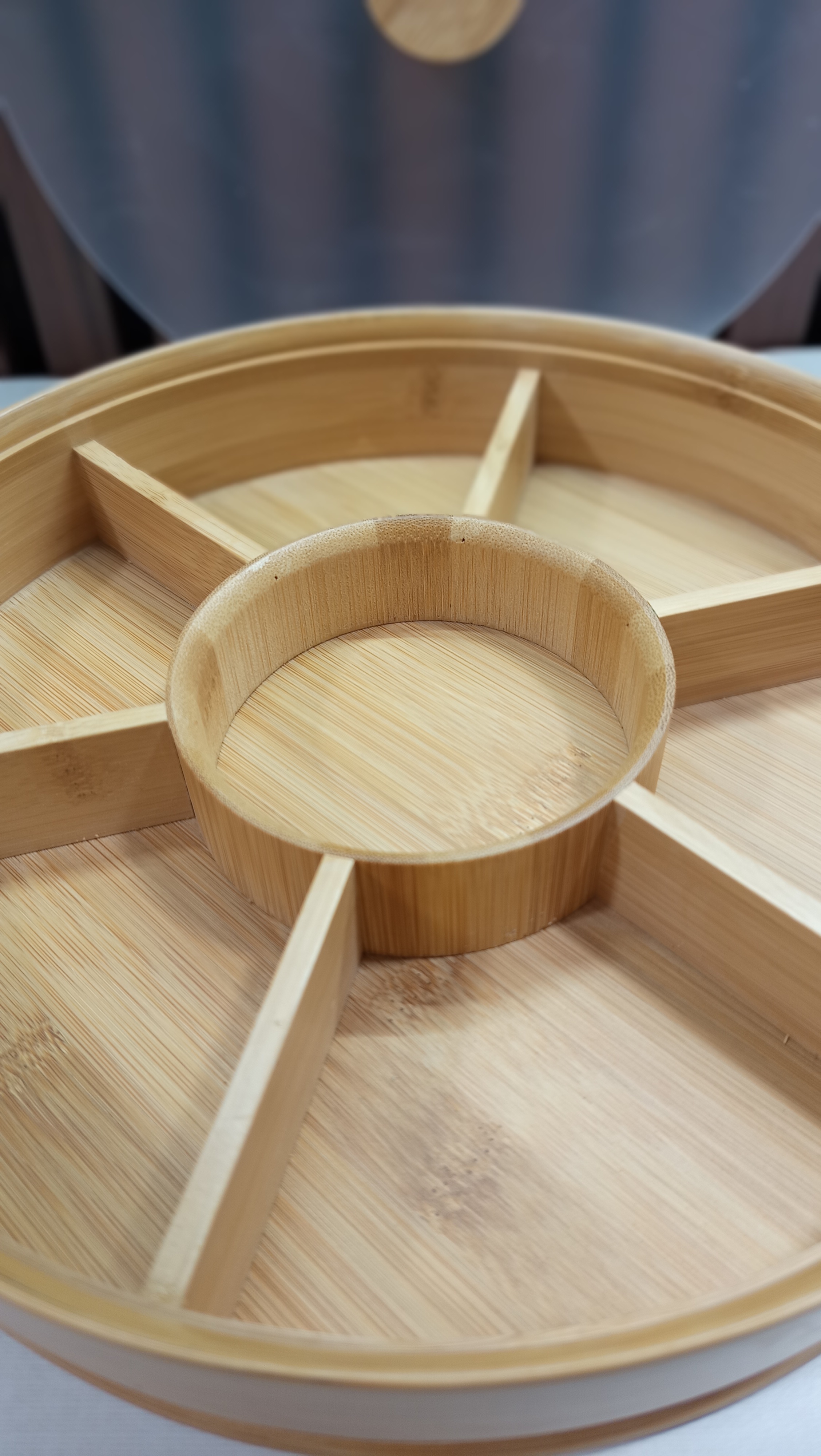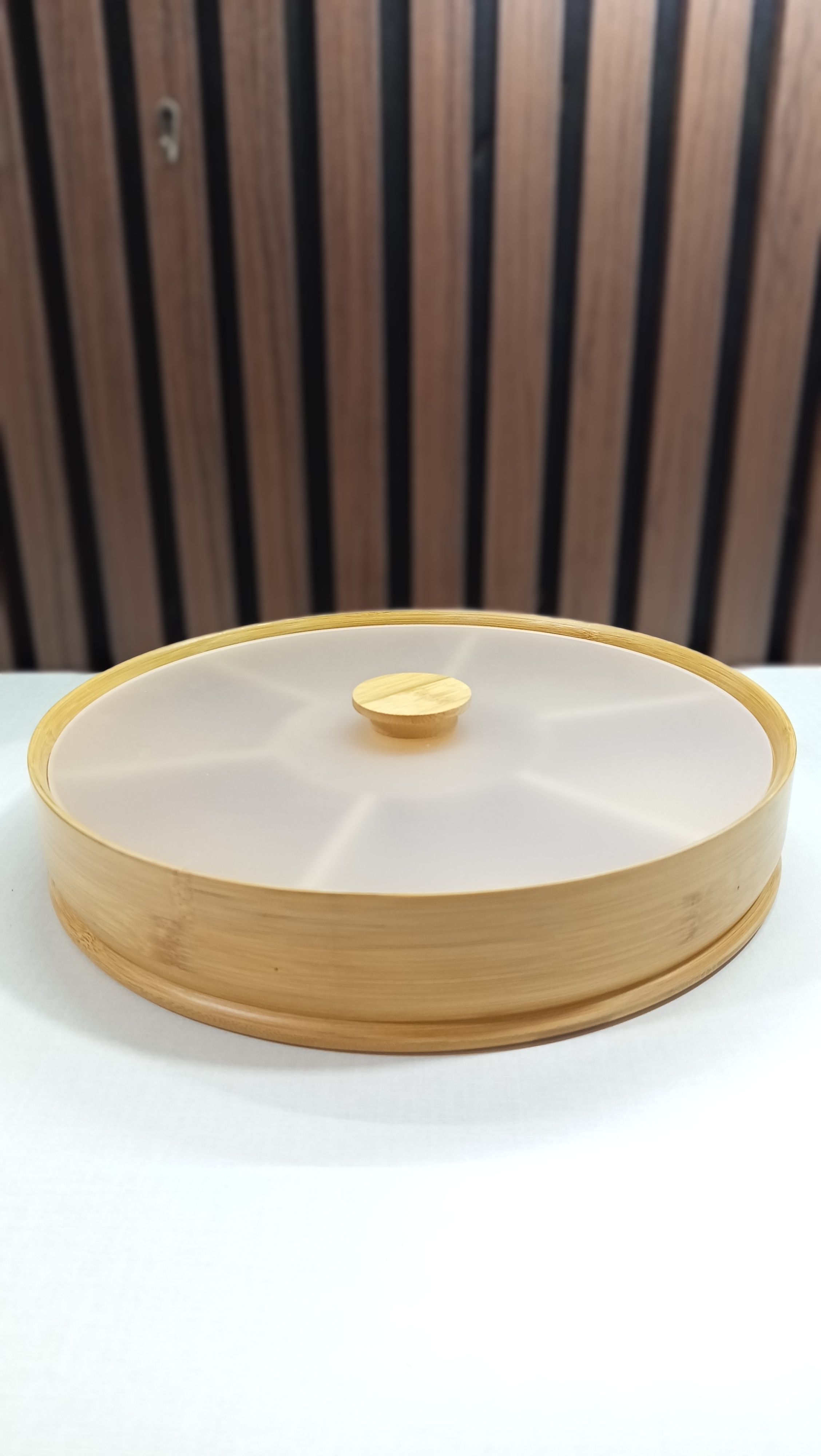 ظرف سرو گرد درب دار بامبو ۷ خانه فطر ۳۰ سانت