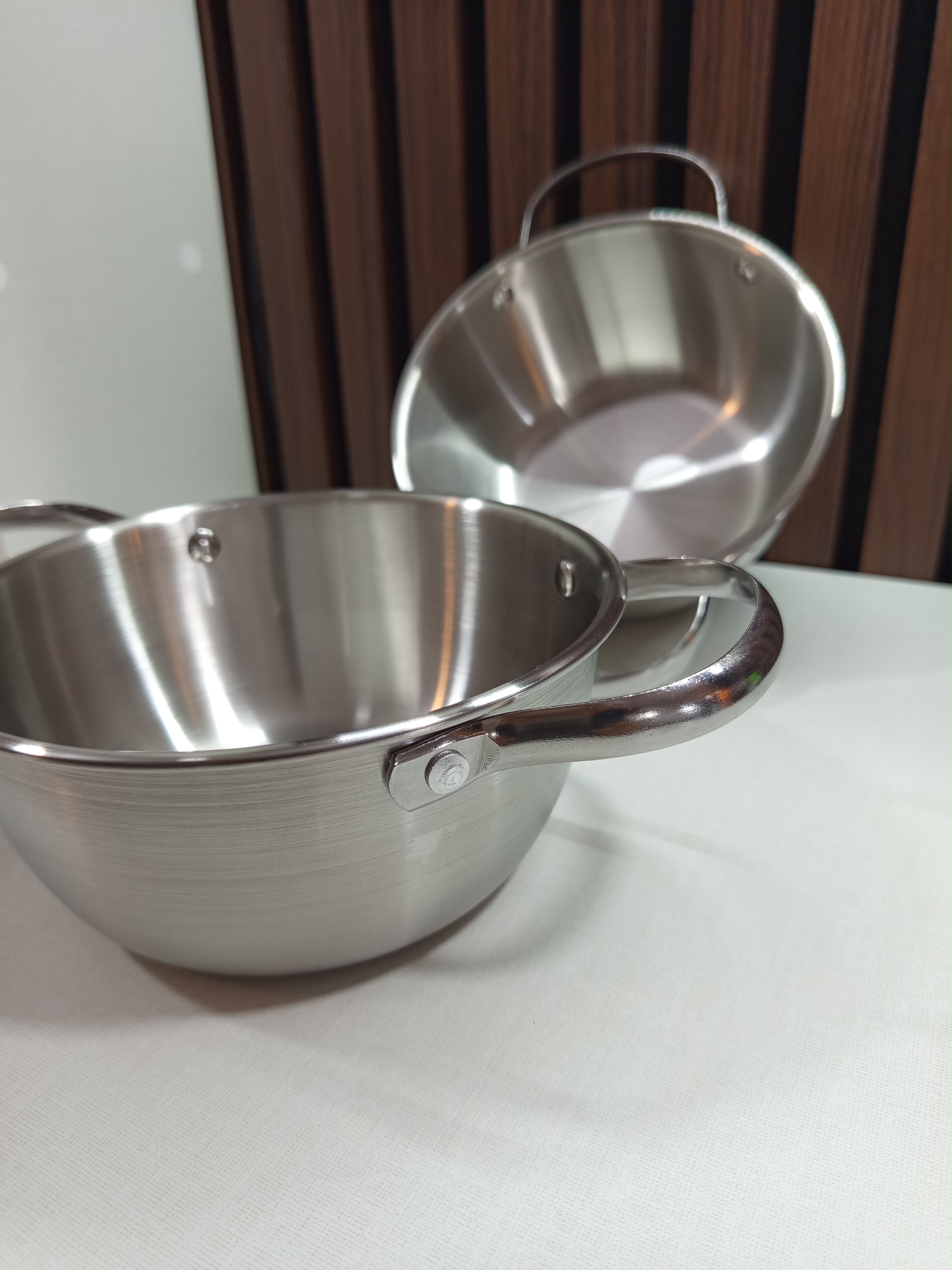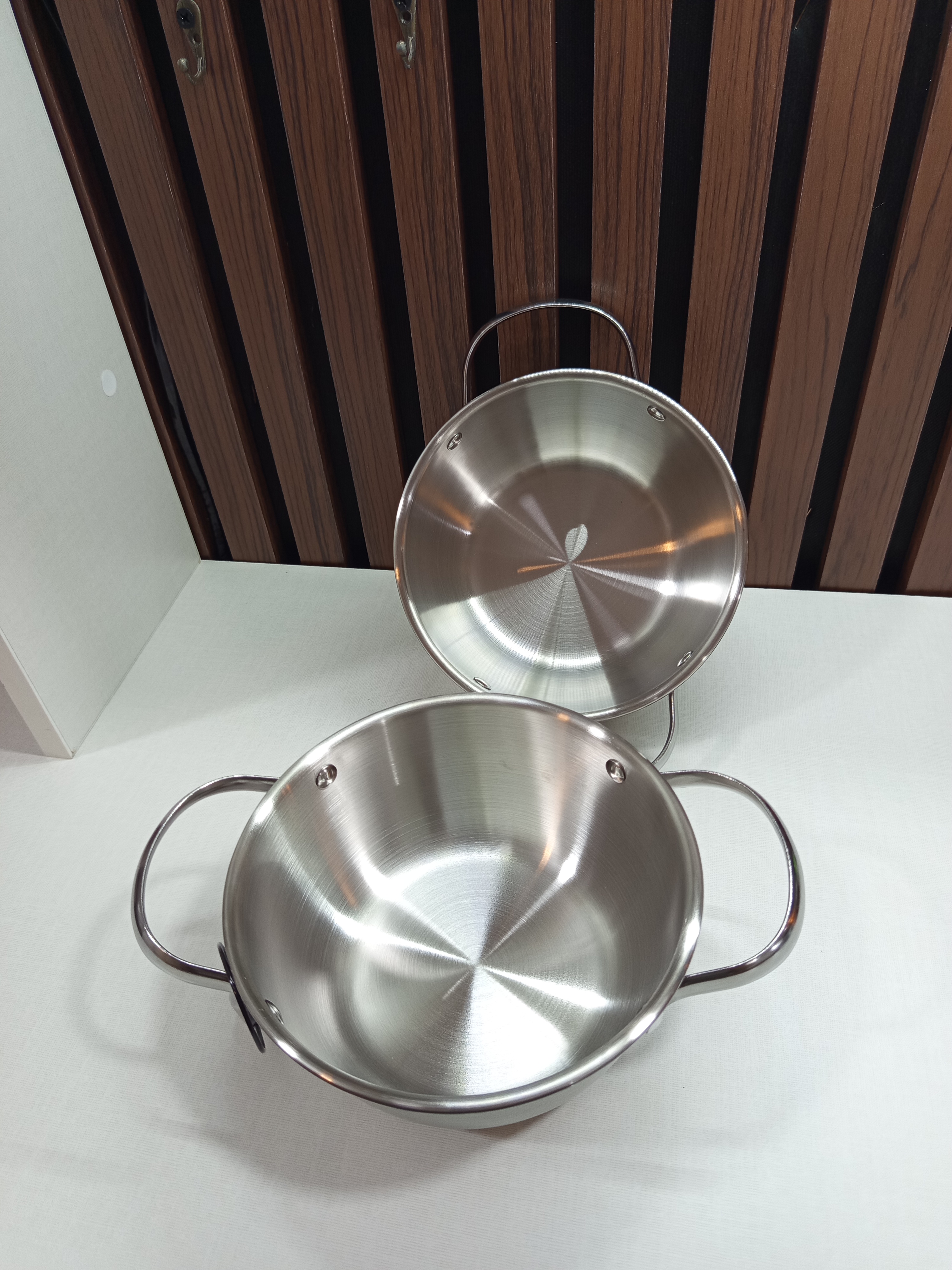 ظرف سرو استیل دو دسته قطر 17 و ارتفاع 8 سانت