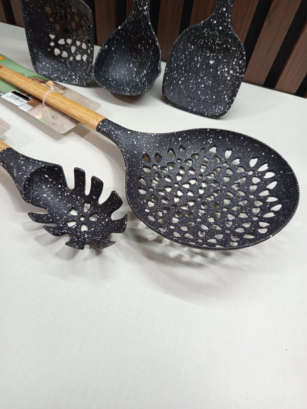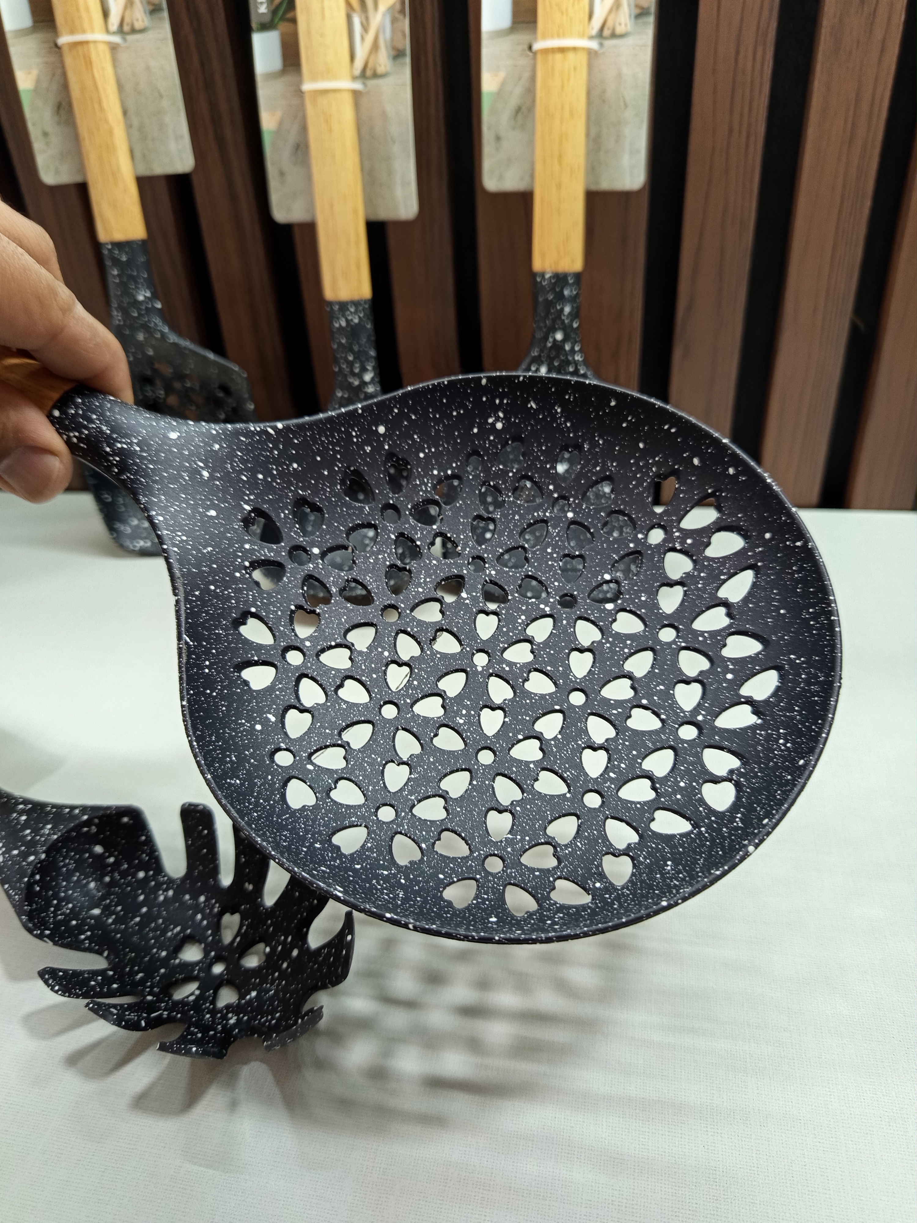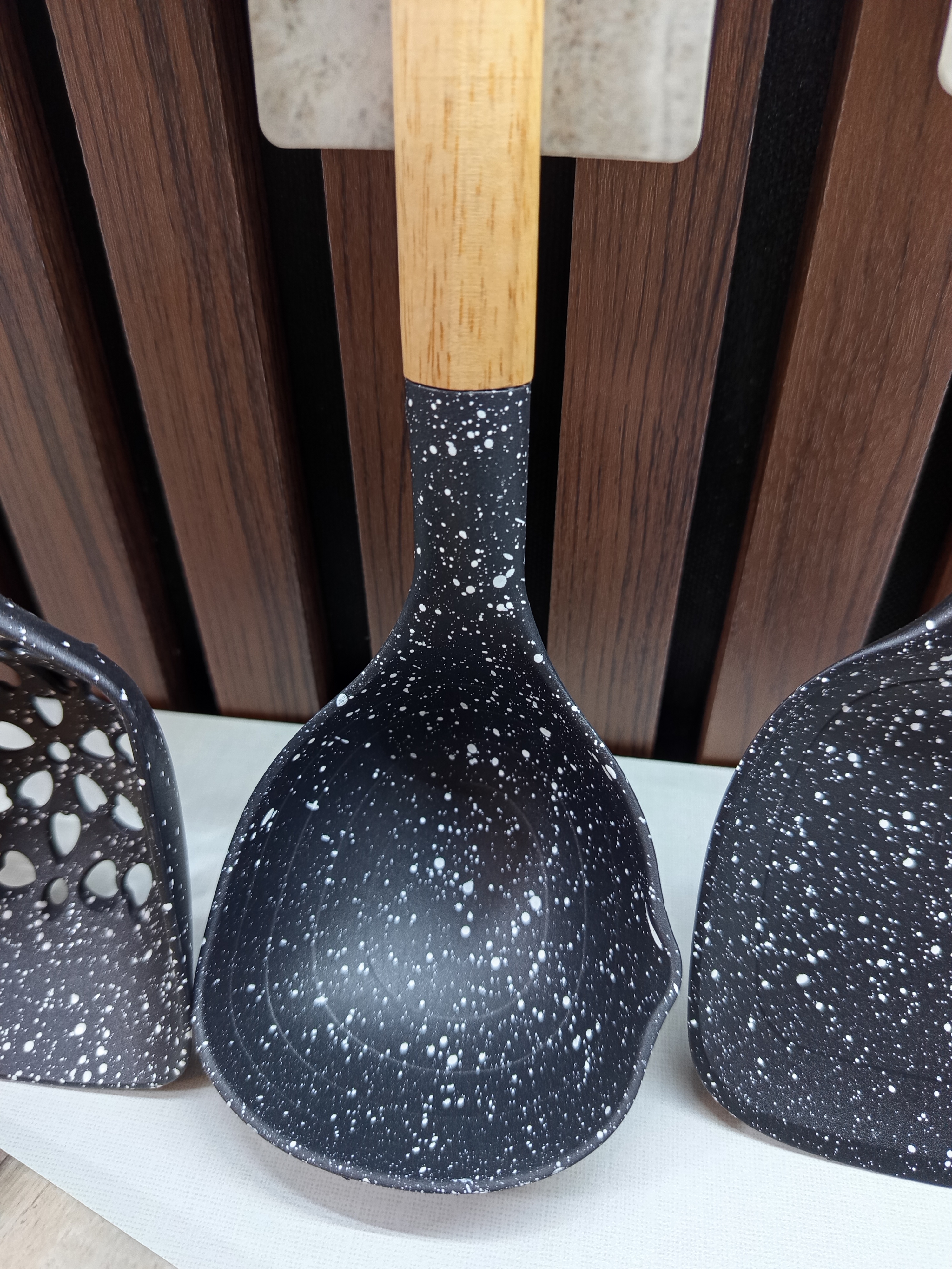 مجموعه کفگیر و ملاقه های کاربردی آشپزخانه مشکی دسته چوپ