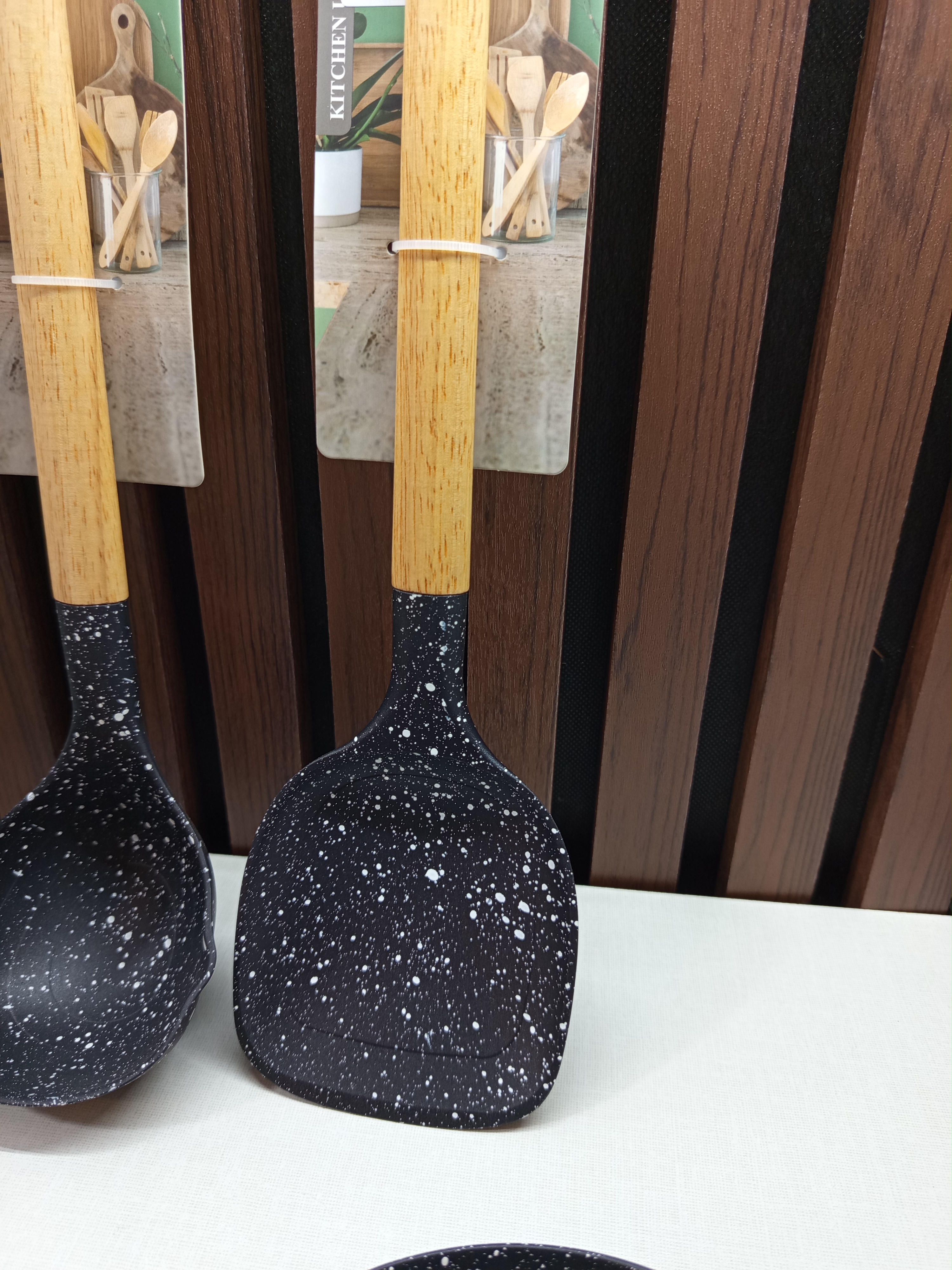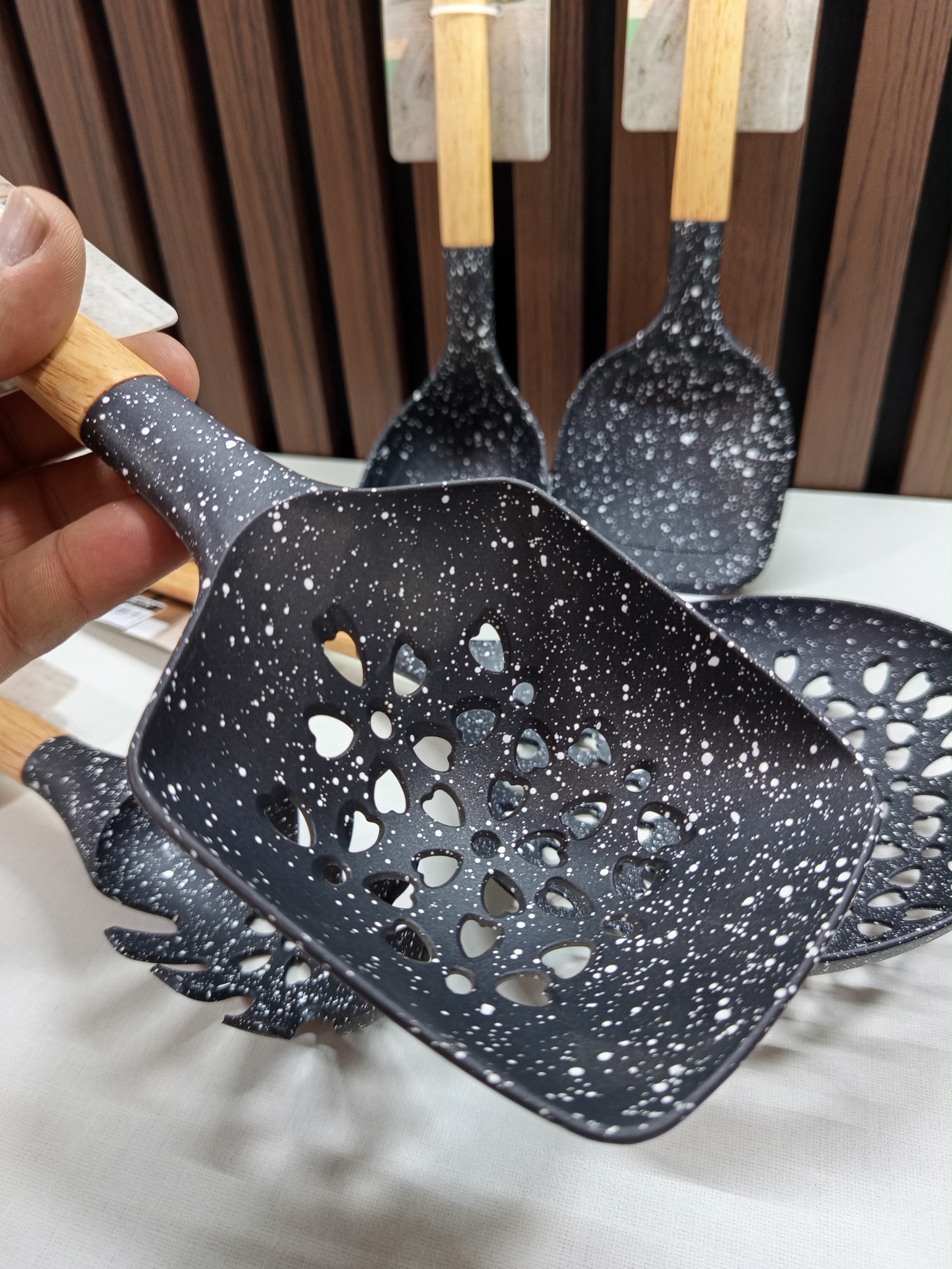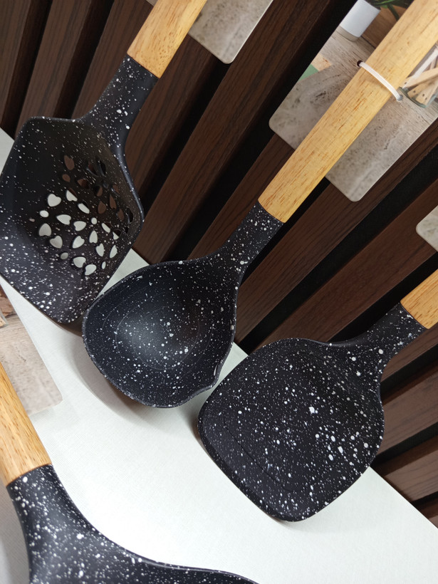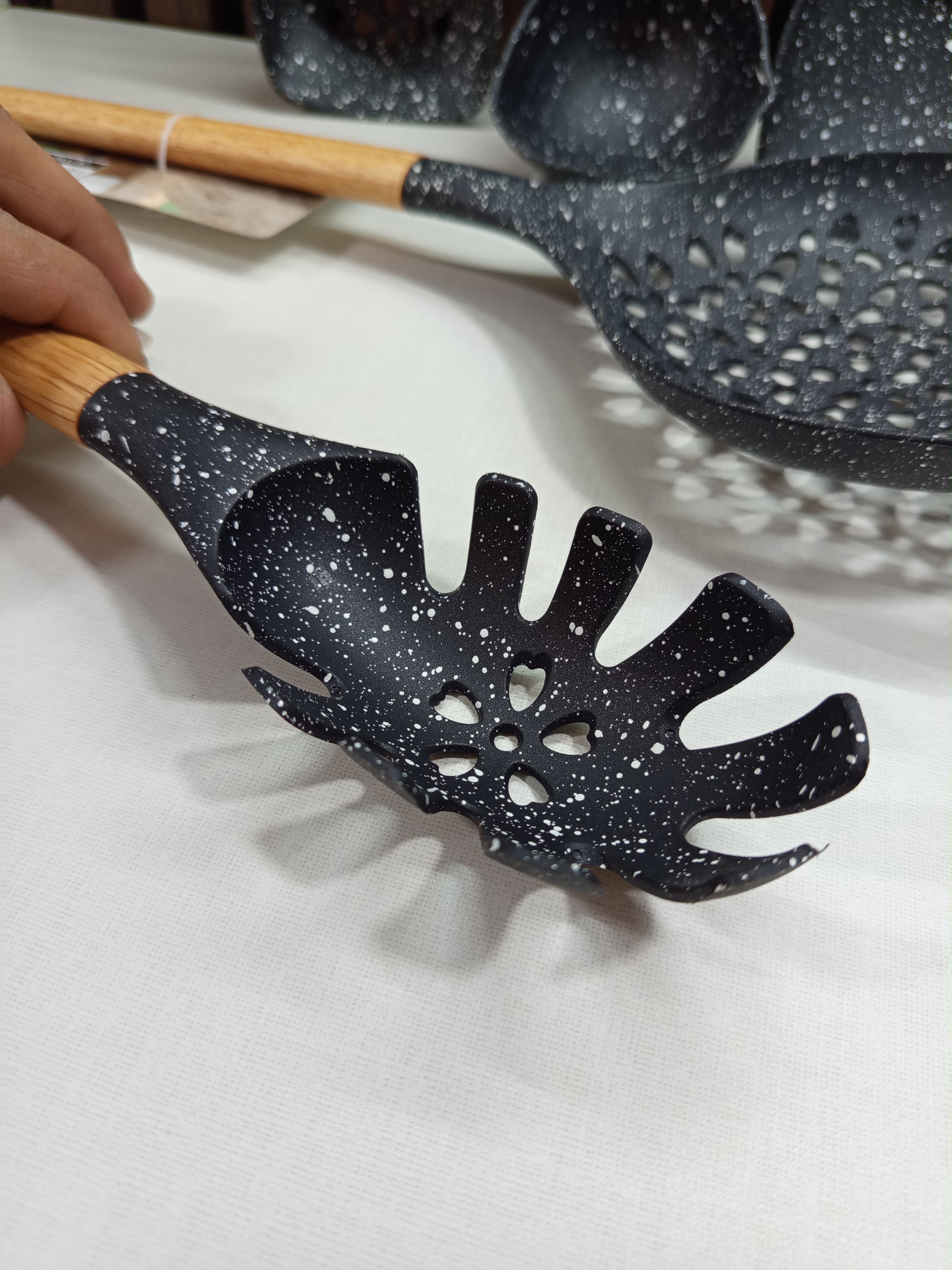 مجموعه کفگیر و ملاقه های کاربردی آشپزخانه مشکی دسته چوپ