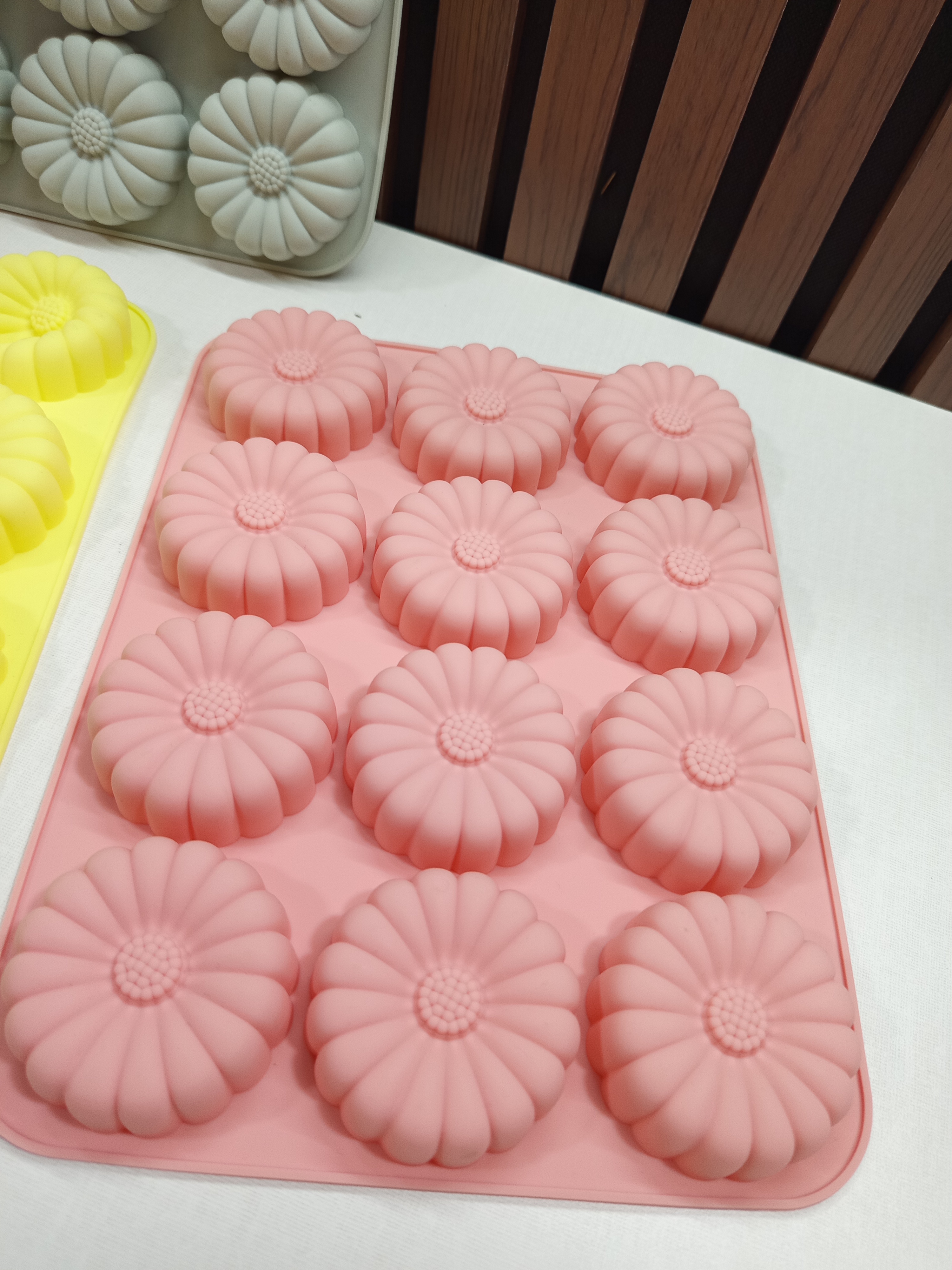 قالب کاپ کیک طرح گل سیلیکون نسوز 12 خانه