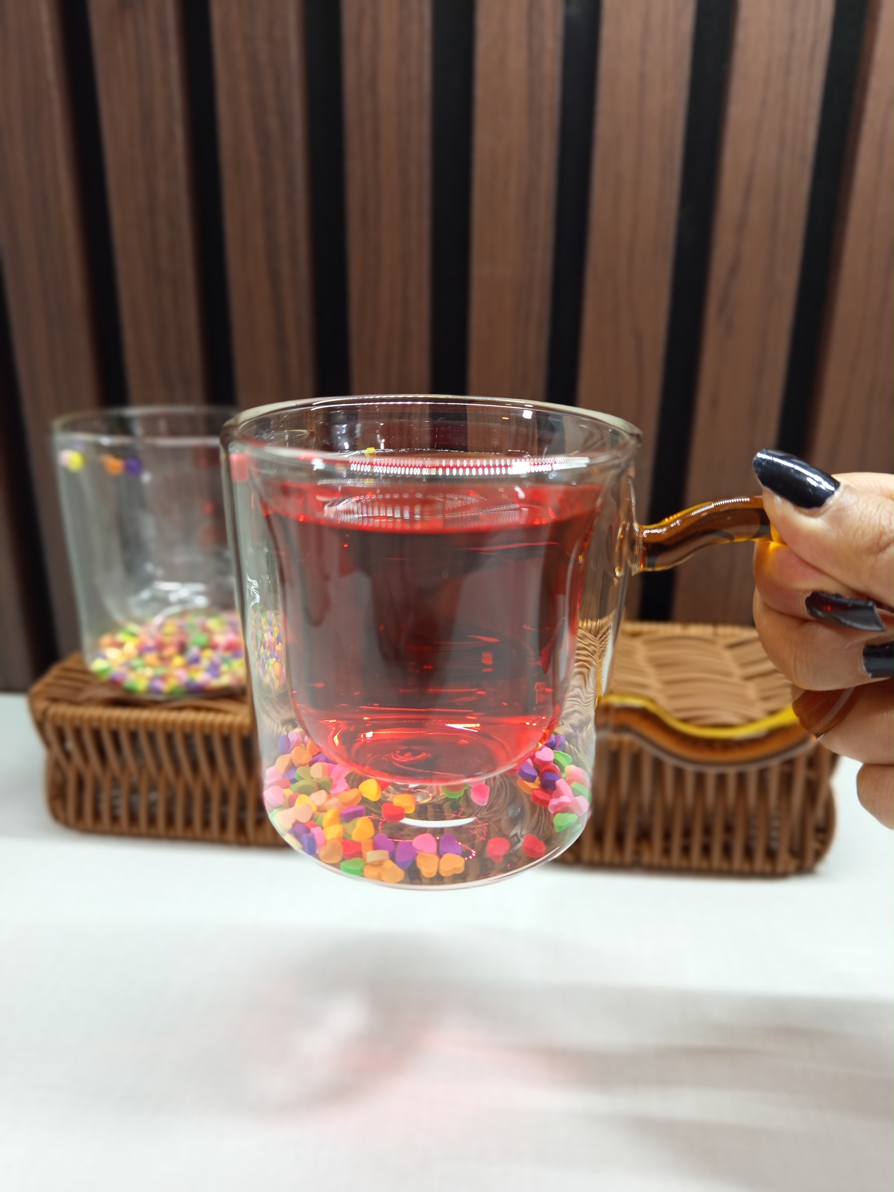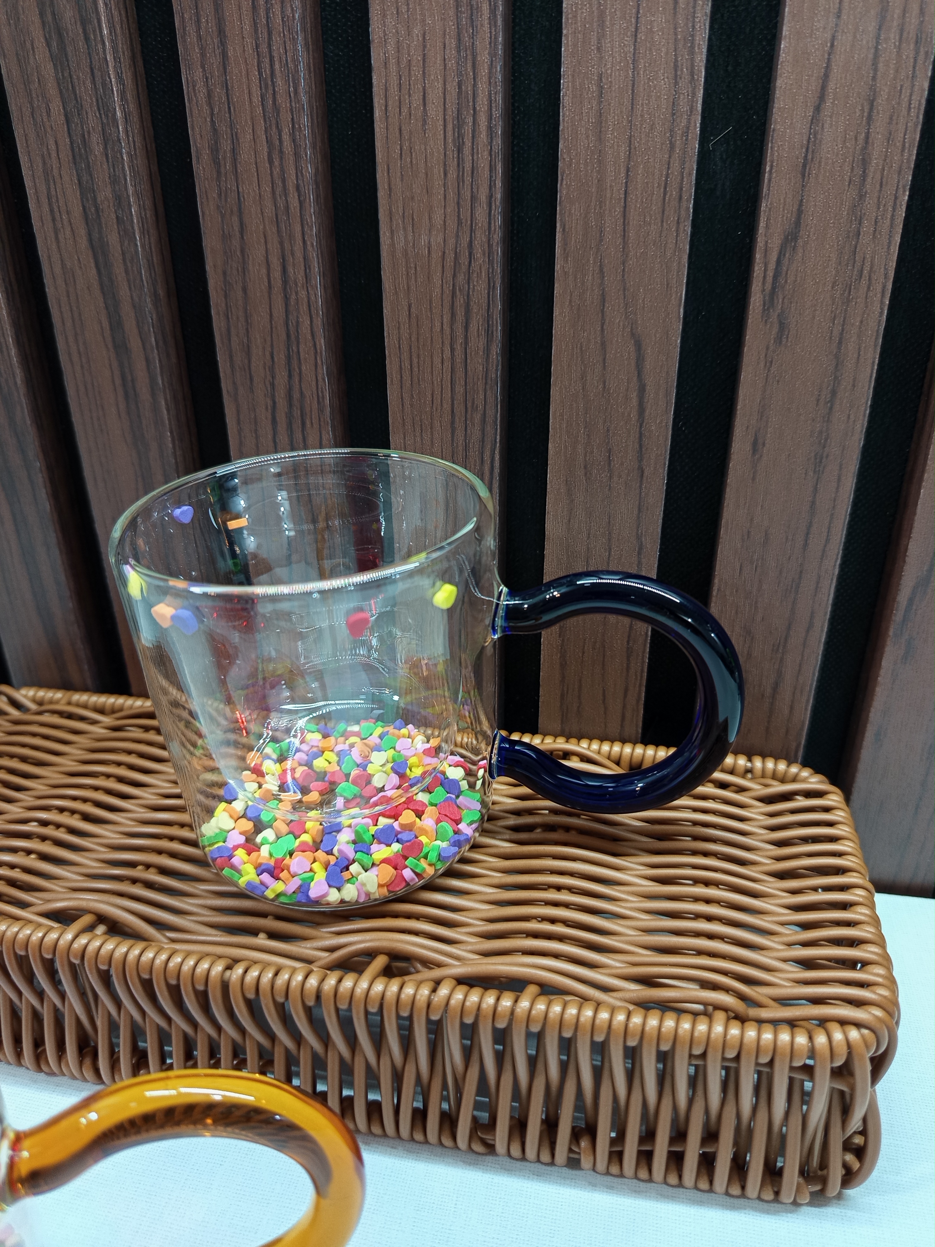 ماگ دوجداره پیرکس دسته رنگی